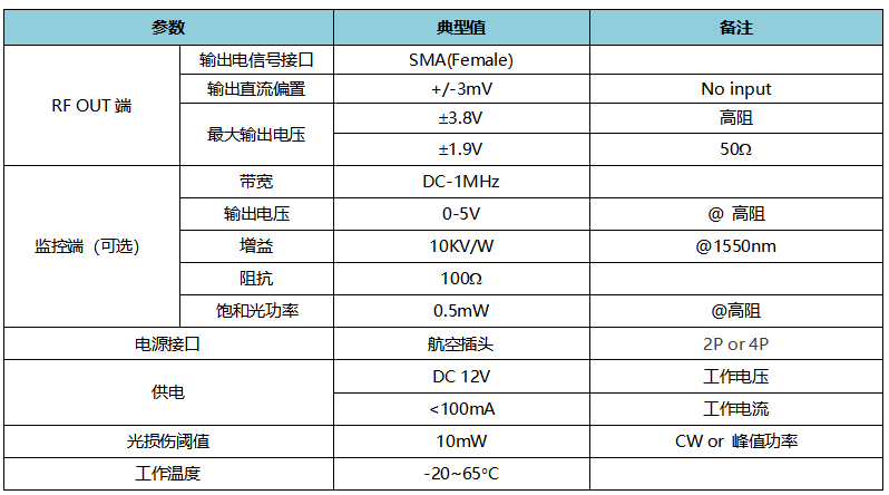 激光雷达 布里渊光纤传感系统 ∅- OTDR 光学层析相干成像OCT | 可选项 光敏面 带宽 增益 耦合方式 |